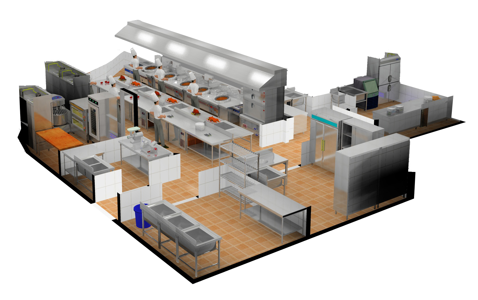 首先,五星級酒店廚房設(shè)計(jì)必須注意以下幾個(gè)要點(diǎn)。