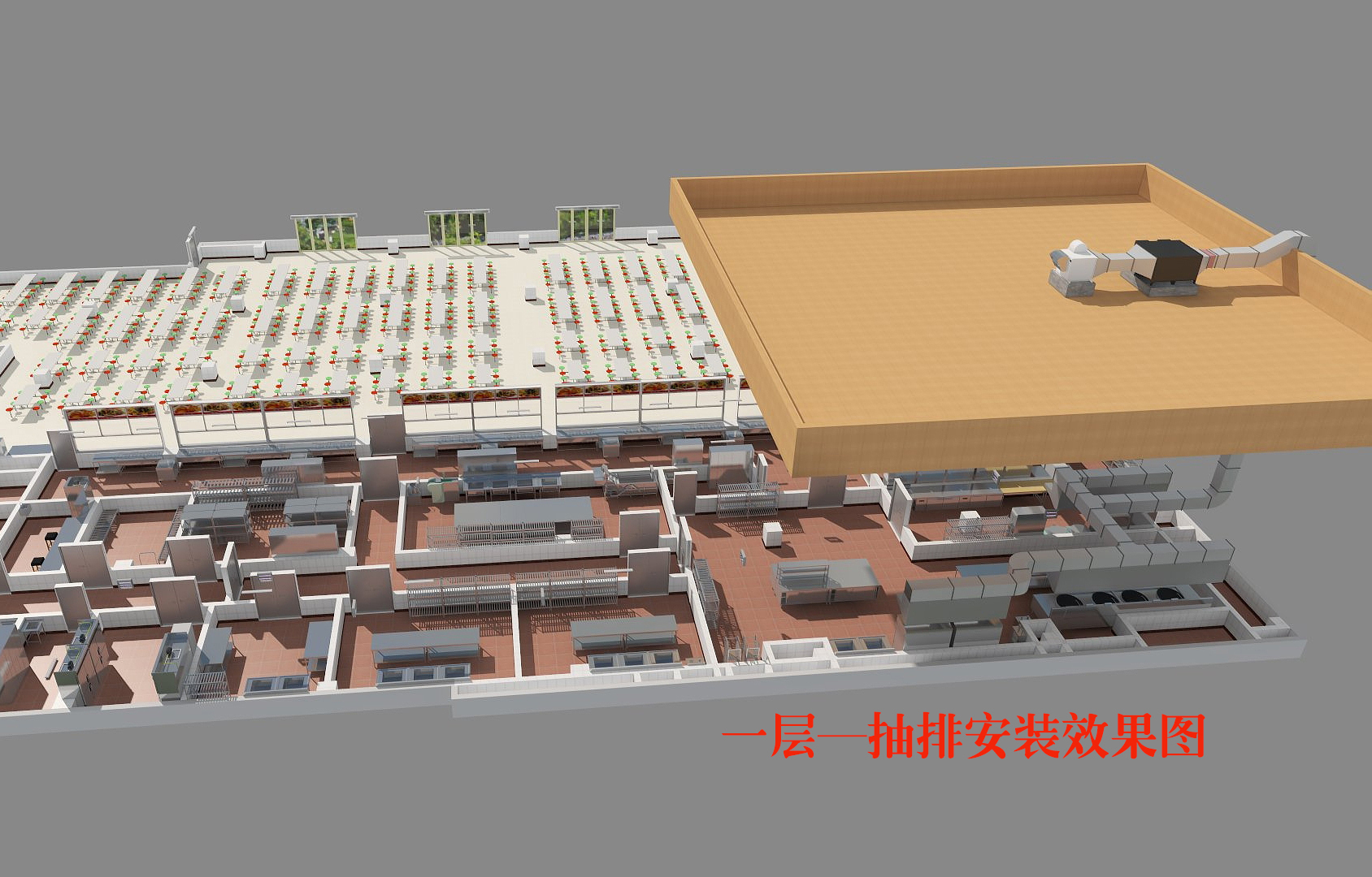 (3)設備放置符合一般使用習慣,便于操作。應集中放置排煙和蒸汽發(fā)生設備,以方便排煙系統(tǒng)的安裝。