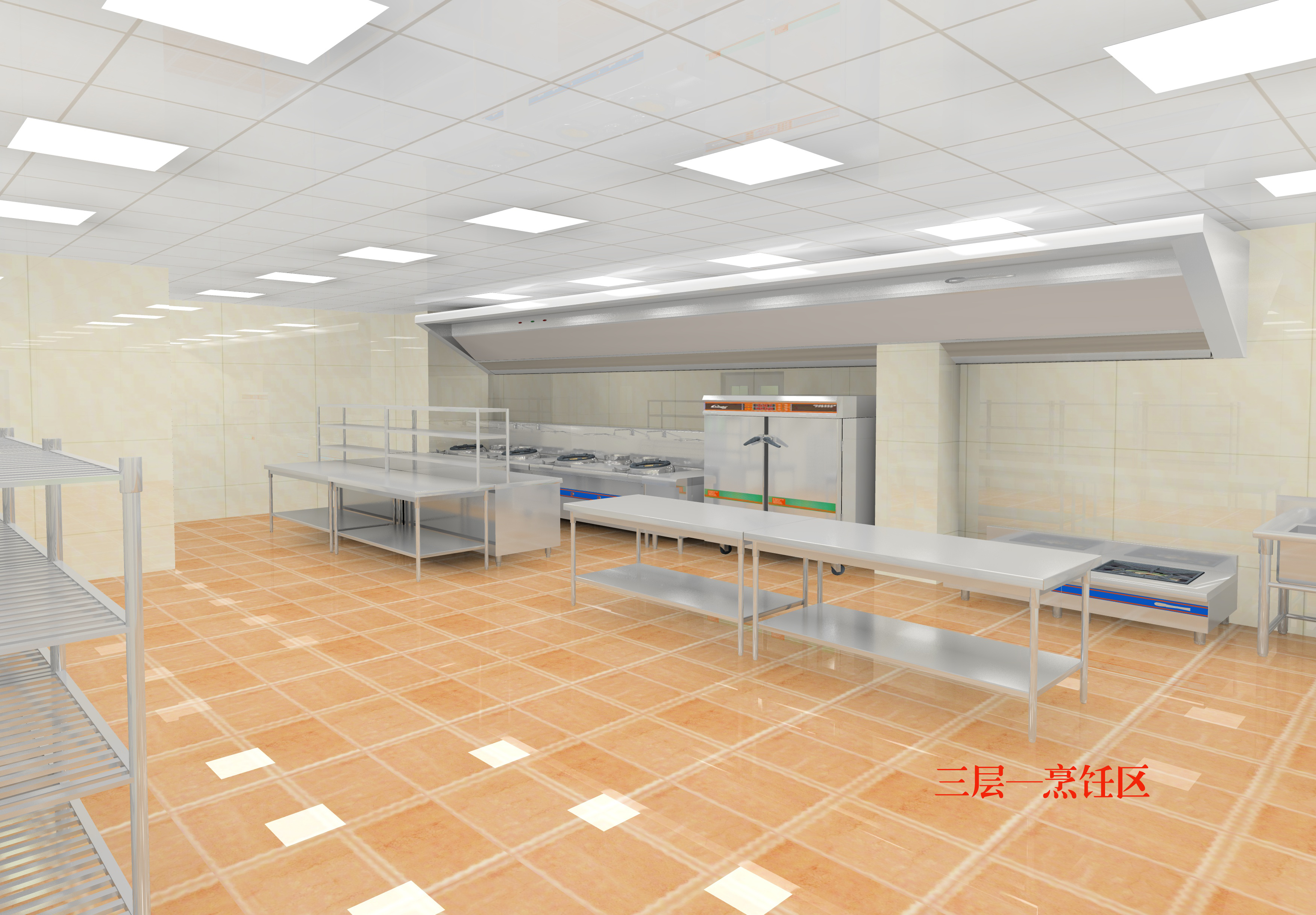 照明分為基本照明和補(bǔ)充照明,基本照明是指整個(gè)廚房都要保持在每個(gè)區(qū)域的屋頂中心處布置照明,補(bǔ)充照明就是在重點(diǎn)部位補(bǔ)充照明,需要補(bǔ)充照明的有洗滌區(qū)、打荷區(qū)、切配臺(tái)、熱廚區(qū)等,補(bǔ)充照明主要以炊具設(shè)備自帶的照明系統(tǒng)(如防爆燈)為主,電源由炊具設(shè)備統(tǒng)一提供,也可以另外添加燈具,滿足照明要求。