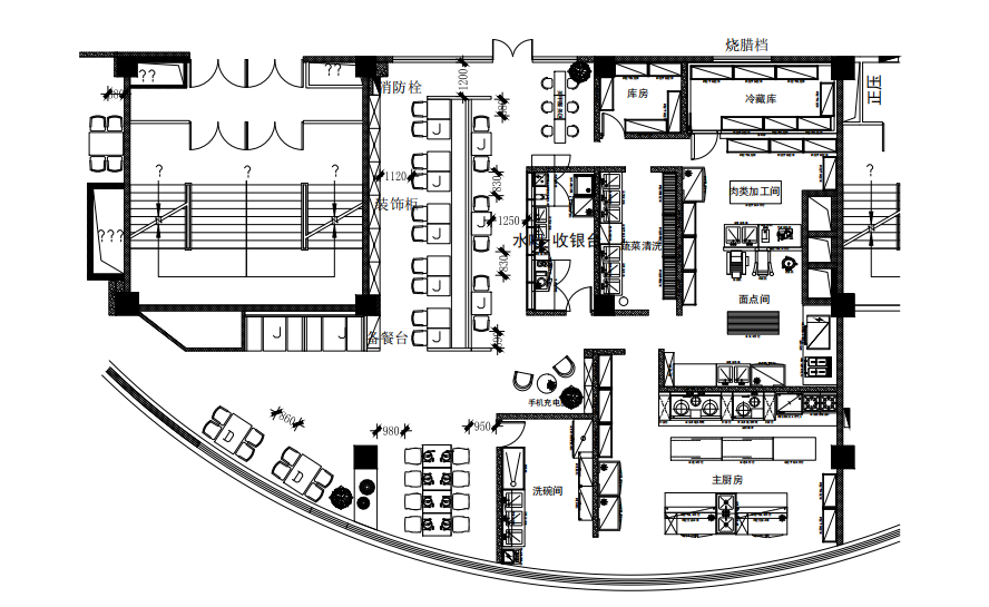 使用的灶具少,灶具主要是用大鍋灶煮面、熬粥,只需一兩眼炒灶用來制作主食配料,或用來煮零點(diǎn)的面條、餃子;使用的機(jī)械設(shè)備多,如和面機(jī)、壓面機(jī)、包子機(jī)、菜焰機(jī)、攪拌機(jī)等;蒸、煮、烤、炸、煎設(shè)備用得多,蒸飯柜、夾層鍋、烤箱、電炸 鍋、電餅鐺等;主食加工間與副食加工間特點(diǎn)不同,主食的米飯、饅頭、包子、餃子等食品大多是批量制作,批量蒸煮生產(chǎn)。所以,除煎炸食品外,生制與熟制可以分開區(qū)域設(shè)置。熟制區(qū)需要出餐臺,生制區(qū)需要機(jī)械設(shè)備、工作臺、及原料運(yùn)送,傳餐通道要有一定的寬度,通道要設(shè)置合理。由于經(jīng)營方式、餐品類別、加工工藝、出餐產(chǎn)量大小差異較大,主食加工間布局與飯店廚房設(shè)計(jì)自有特點(diǎn)。
