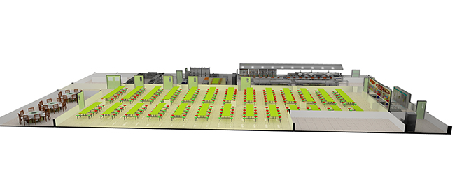 1.方便收殘和餐具傳送:餐具重量大、數(shù)量多、易破損,減少搬運有利于減少破損損耗,減輕傳送餐具的勞動強度。為方便收殘和餐具傳送,洗碗消毒間要設(shè)在收殘口,以便用餐車推送餐具,并力求在同一平面內(nèi),無臺階、錯層。條件不允許的廚房,也要在出餐口附近設(shè)消洗間。不宜進入廚房深處,減少運送距離,也減少殘食與新餐品的交叉。