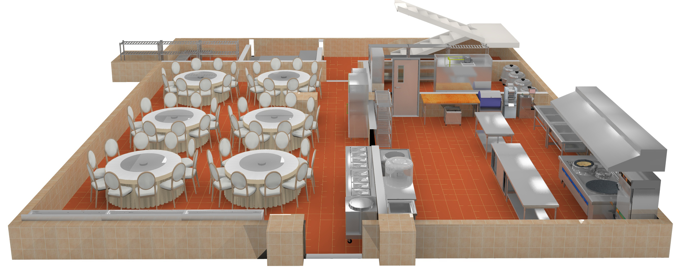 大型單位食堂廚房設(shè)計(jì)方案,充分考慮了食堂用餐情況以及特殊的環(huán)境,在滿足廚房功能的同時(shí),也考慮了廚房的安全性,節(jié)能性,環(huán)保性等。